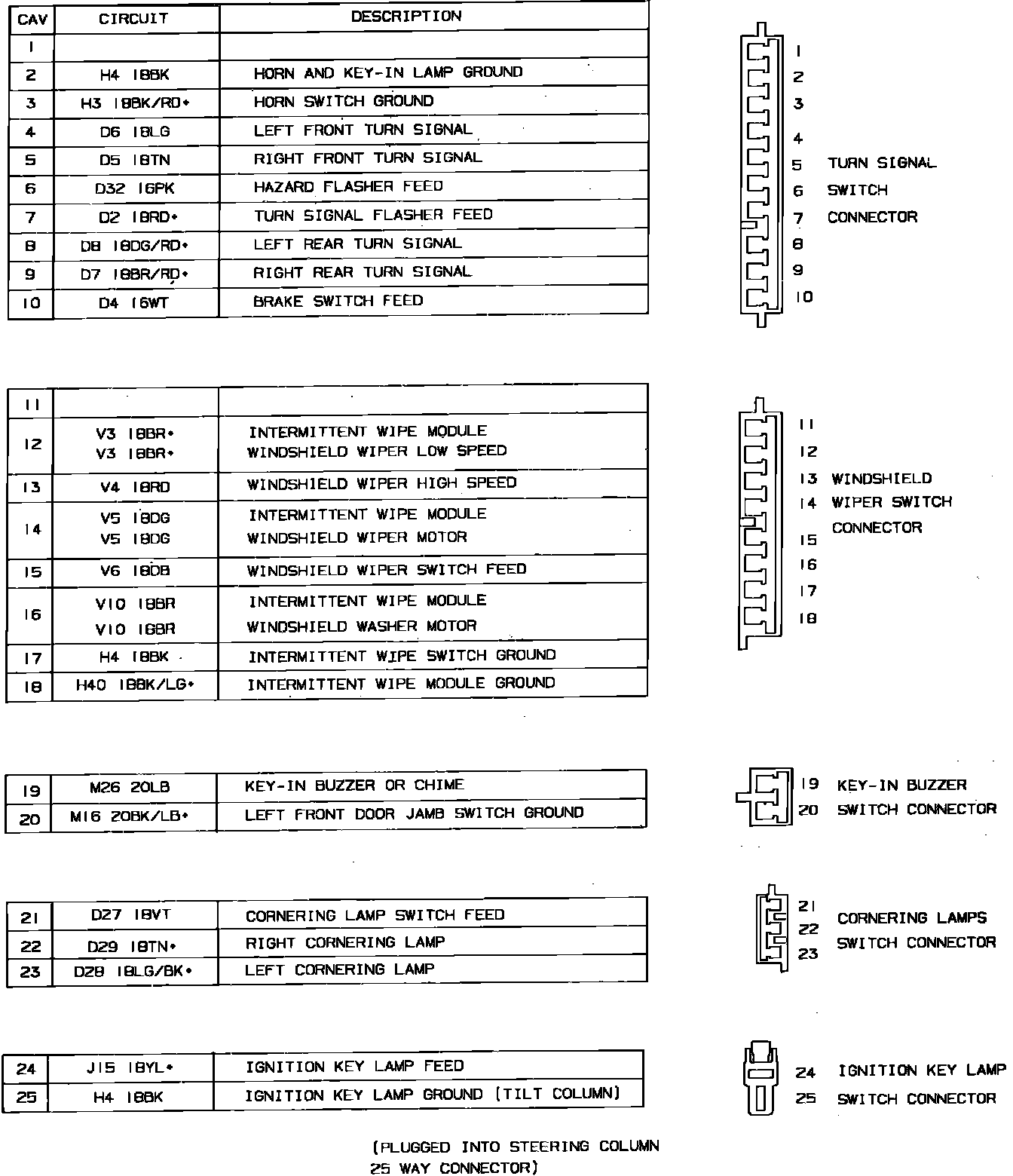Instrument Panel To Steering Column Connectors: