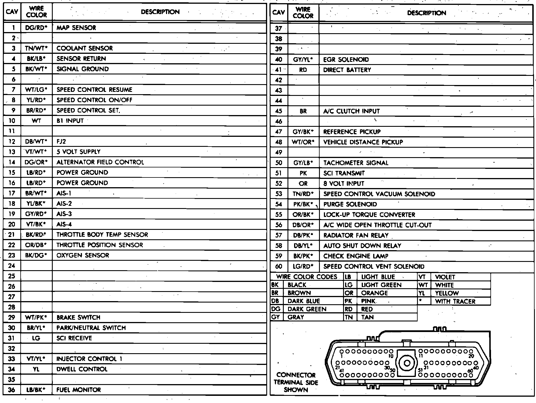Fig. 16 SMEC 60 pin connector terminal identification. 1988 models: