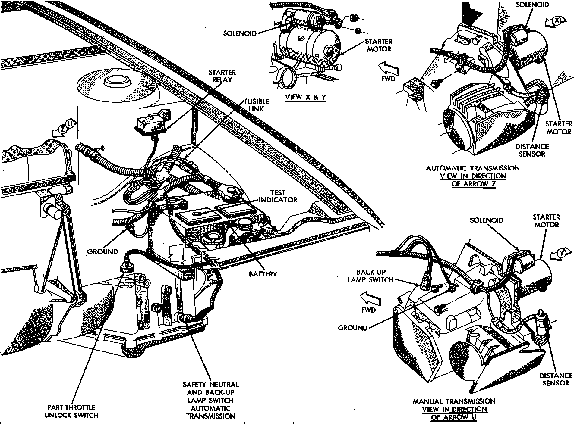 Engine Compartment Starter & Transmission Switch Components: