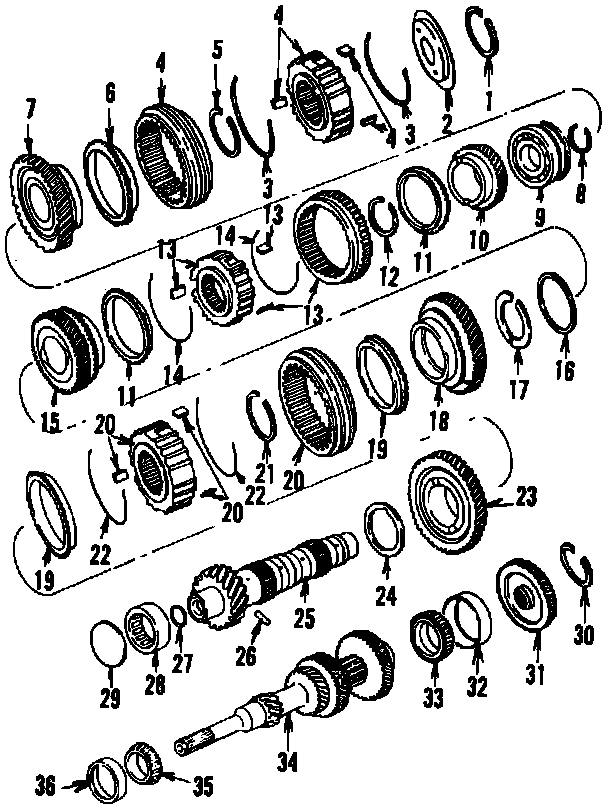 Gear Train-A465, A520, A523, A525, A543, A555 & A568, Without 284 Model, A465, A520, A523, A525, A543, A555 & A568: