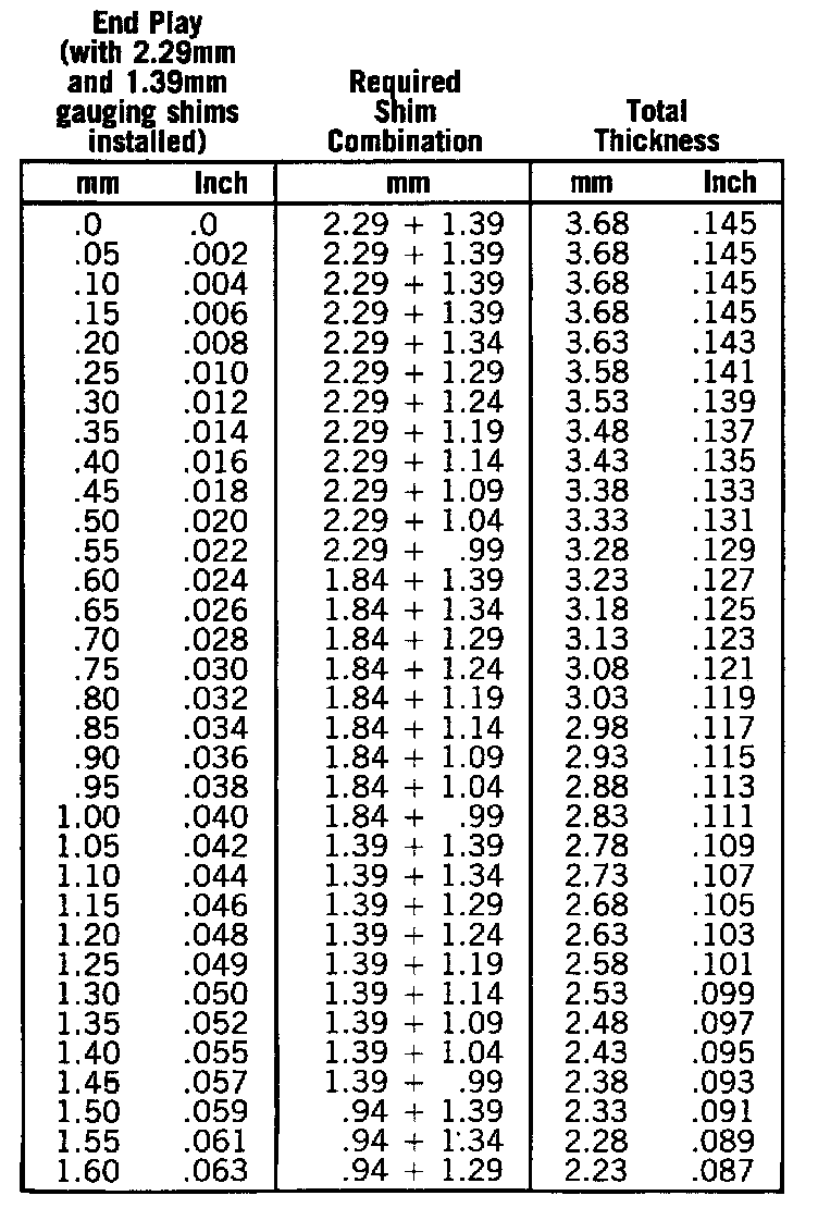Bearing Shim Chart: