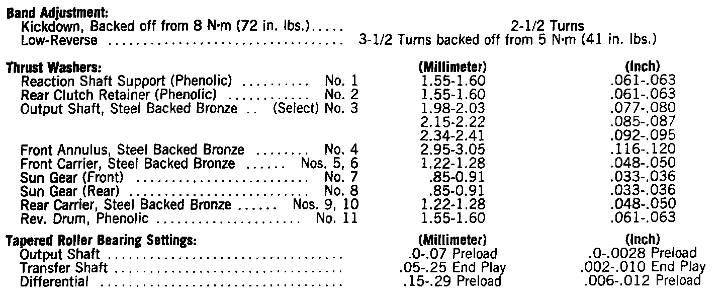 Output Shaft Bearing Shim Chart:
