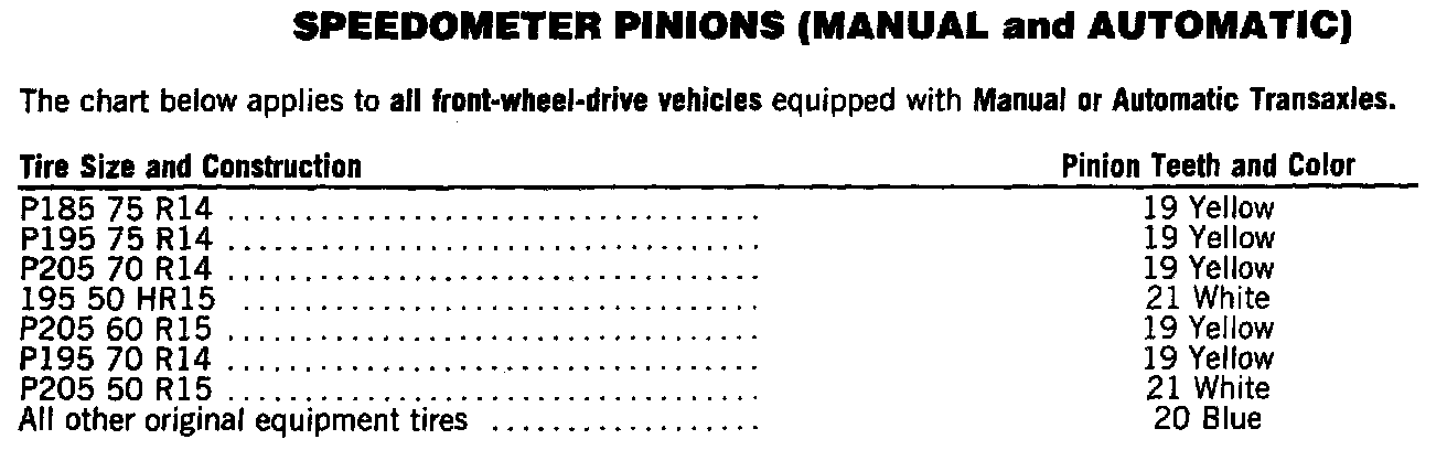 Speedometer Pinions: