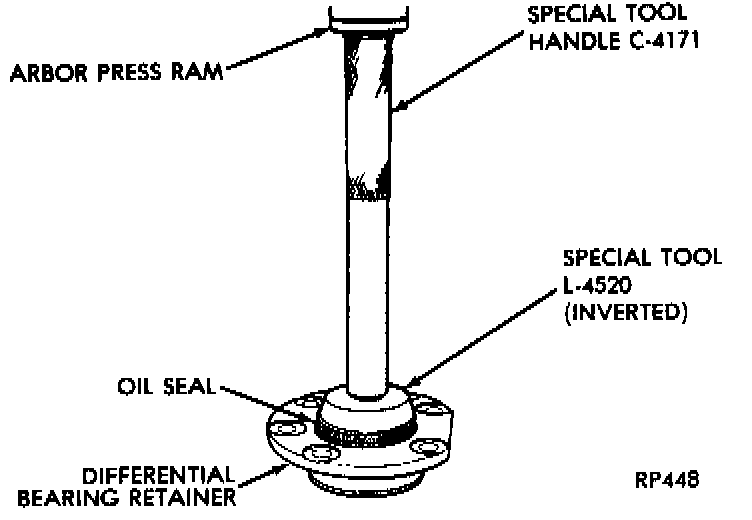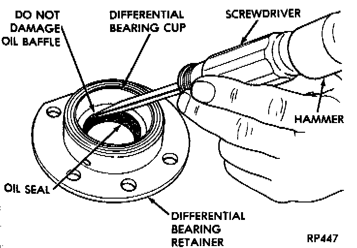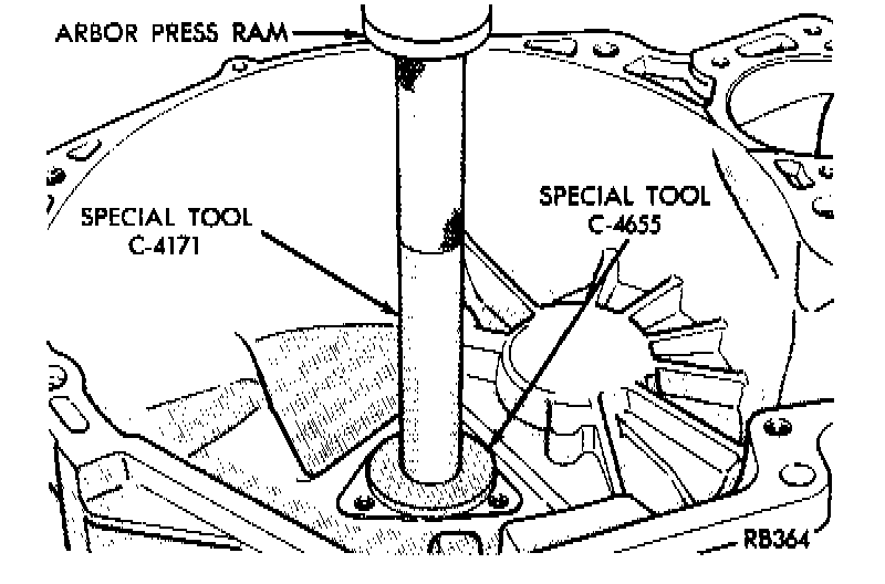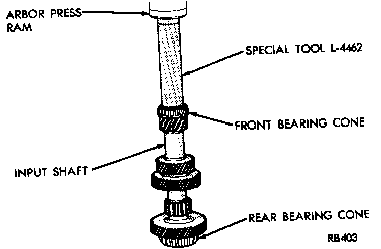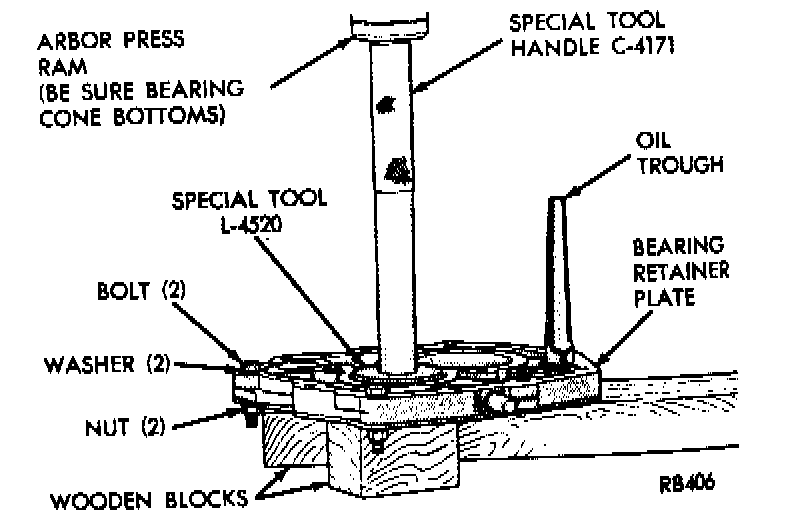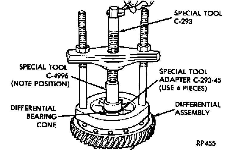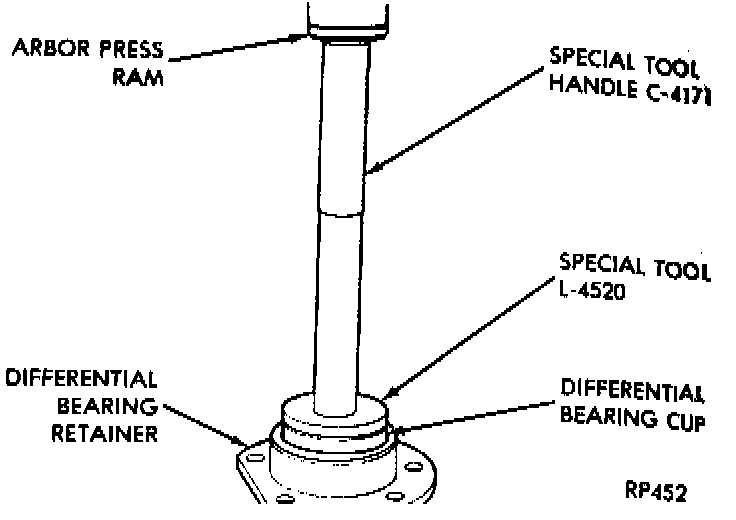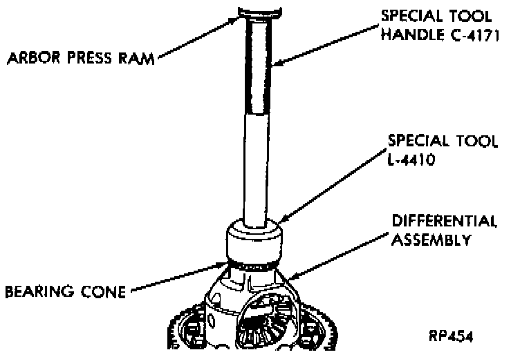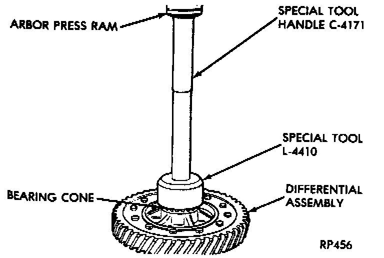1. Take extreme care when removing and installing bearing cups and cones. Use only an arbor press for installation, as a hammer may not properly align the bearing cup or cone. Burrs or nicks on the bearing seat will give a false end play reading while gauging for proper shims. Improperly seated bearing cups and cones are subject to low mileage failure.