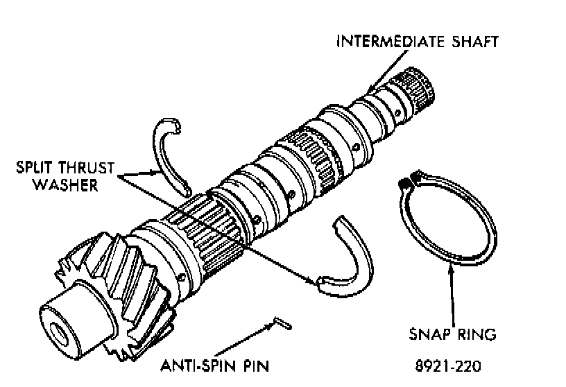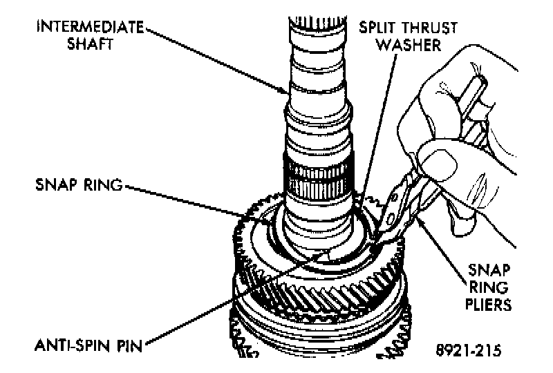 CAUTION: Index snap ring 90 degrees to the split in the thrust washer, as shown.