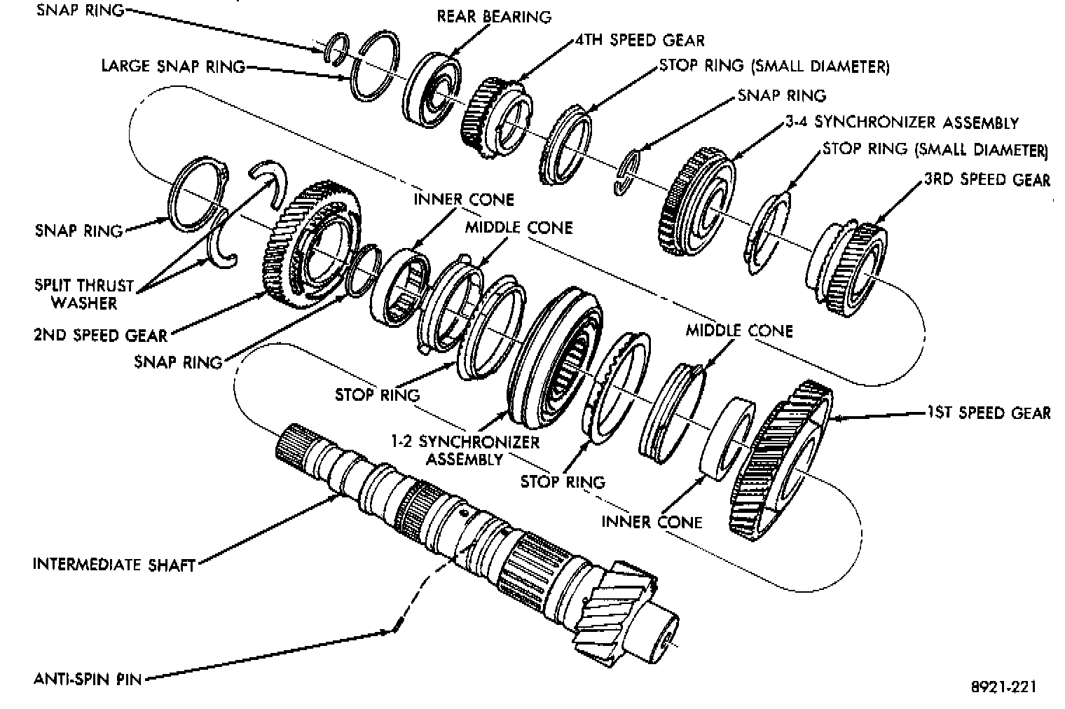 When assembling intermediate shaft, make sure all speed gears turn freely.