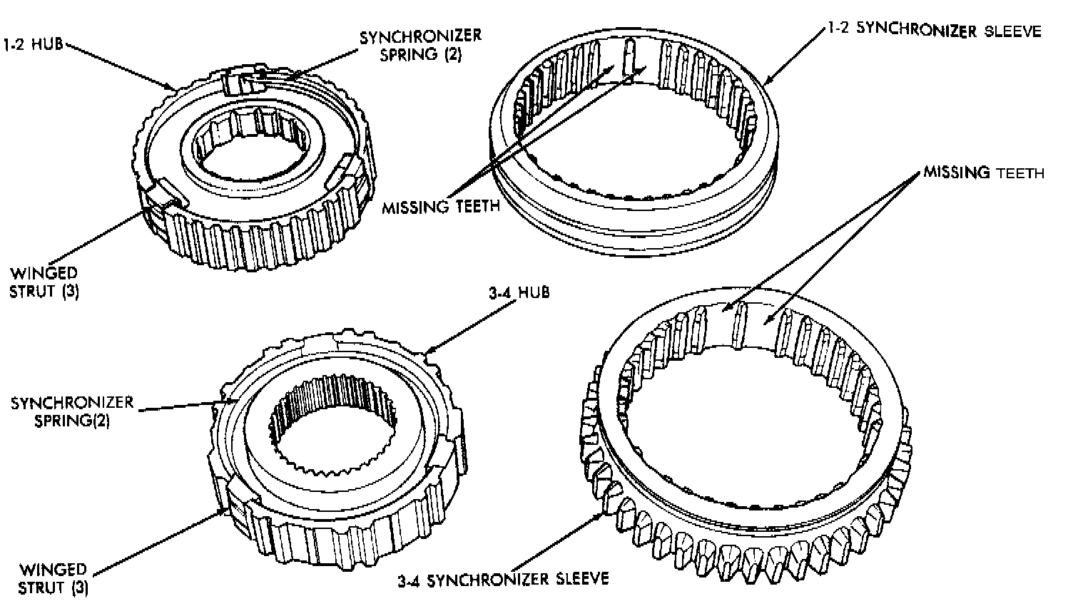 1-2 And 3-4 Synchronizer Sleeves And Hubs: