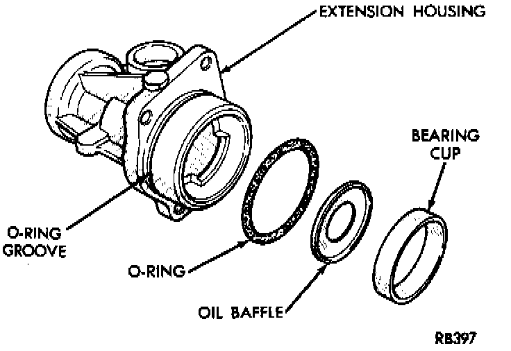 3. Oil differential bearings with SAE 5W-30 engine oil and install differential assembly in transaxle case. Check extension housing O-ring for damage (replace if necessary) and add a 1/16 inch bead of RTV sealant to extension flange. Install extension housing and differential bearing retainer. Torque bolts to specification.