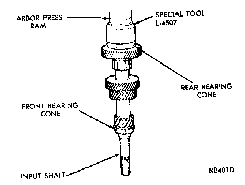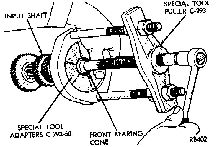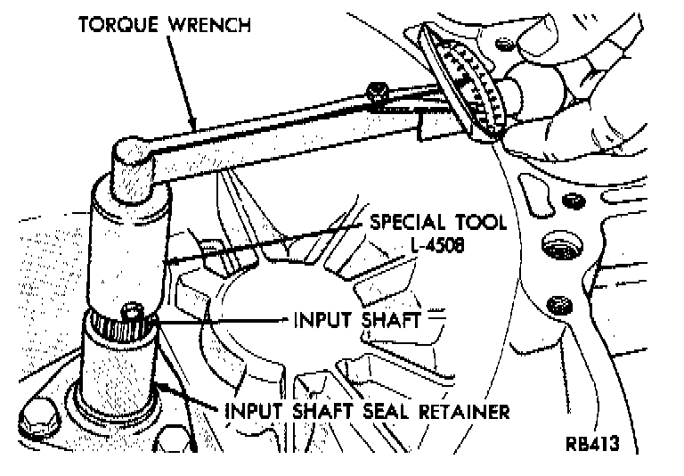 8. To verify that a preload condition does not exist, use Special Tool L-4508 and an inch-pound torque wrench to check input shaft turning torque. The turning torque should be less than 5 in. lbs.