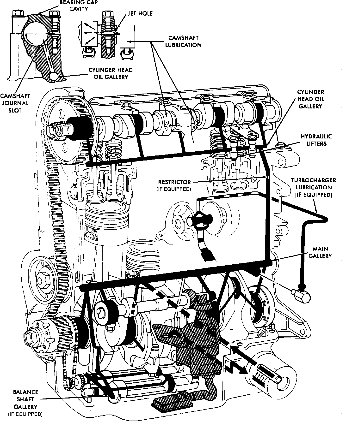 Engines not equipped with either a turbocharger or balance shafts do not have the restrictor in the cylinder block surface.