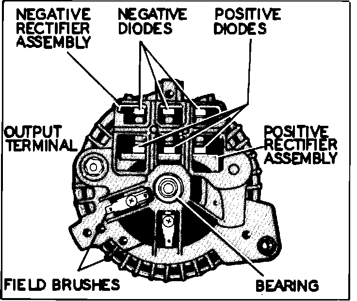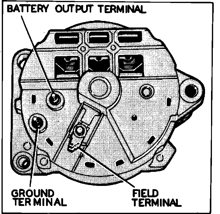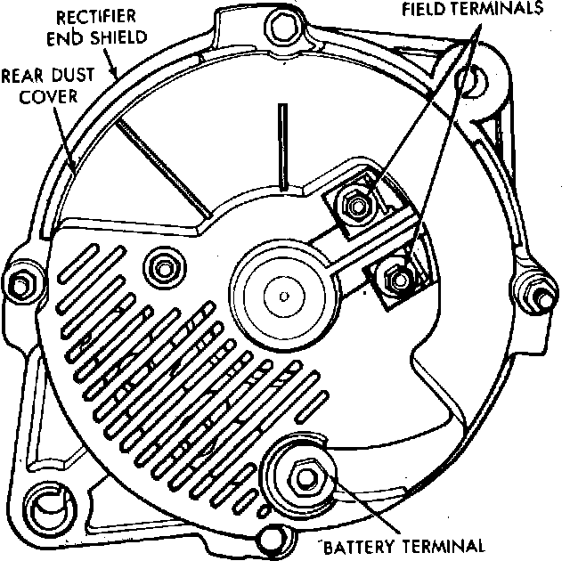 Fig. 2 Alternator assembly. Units w/regulator in engine electronics: