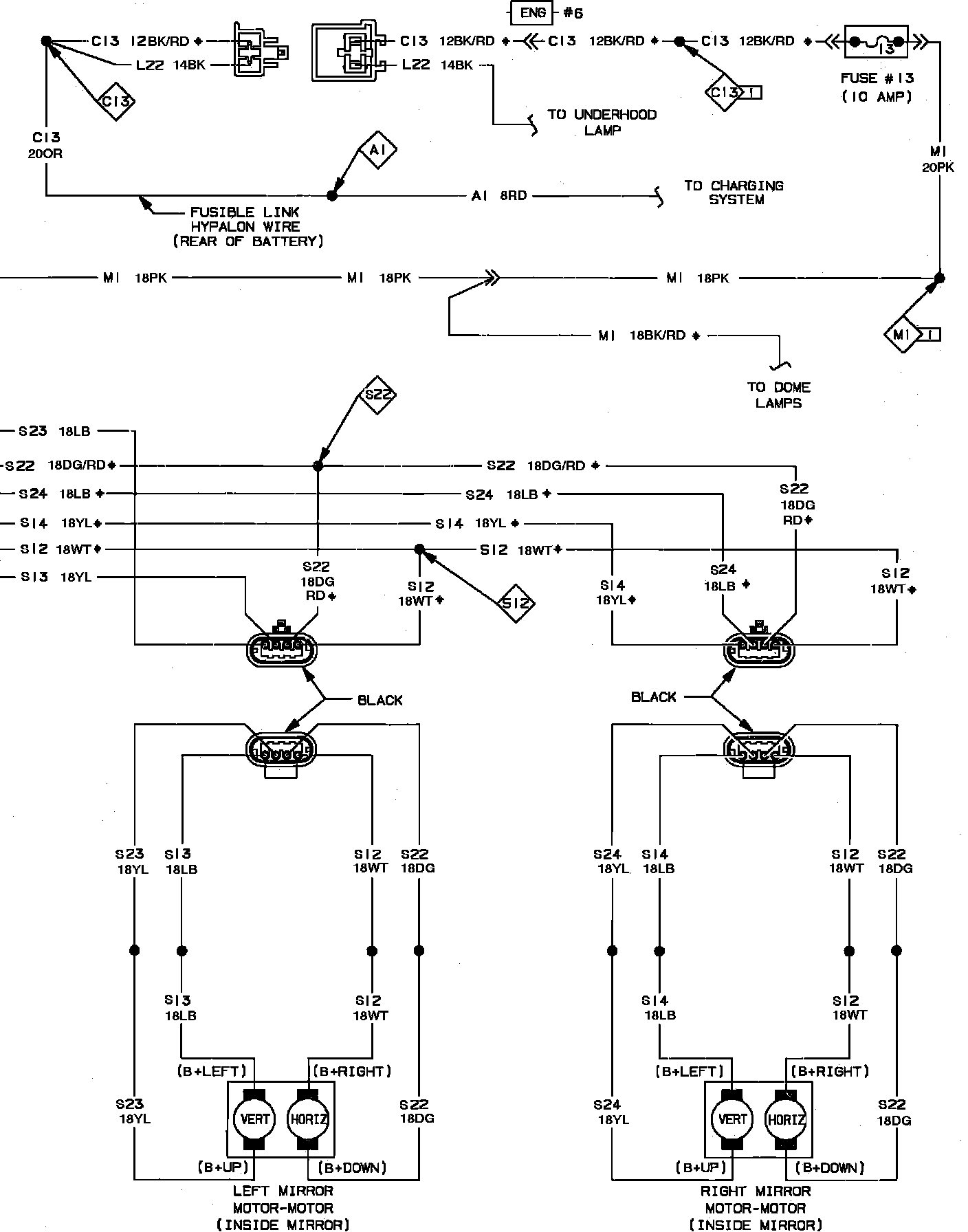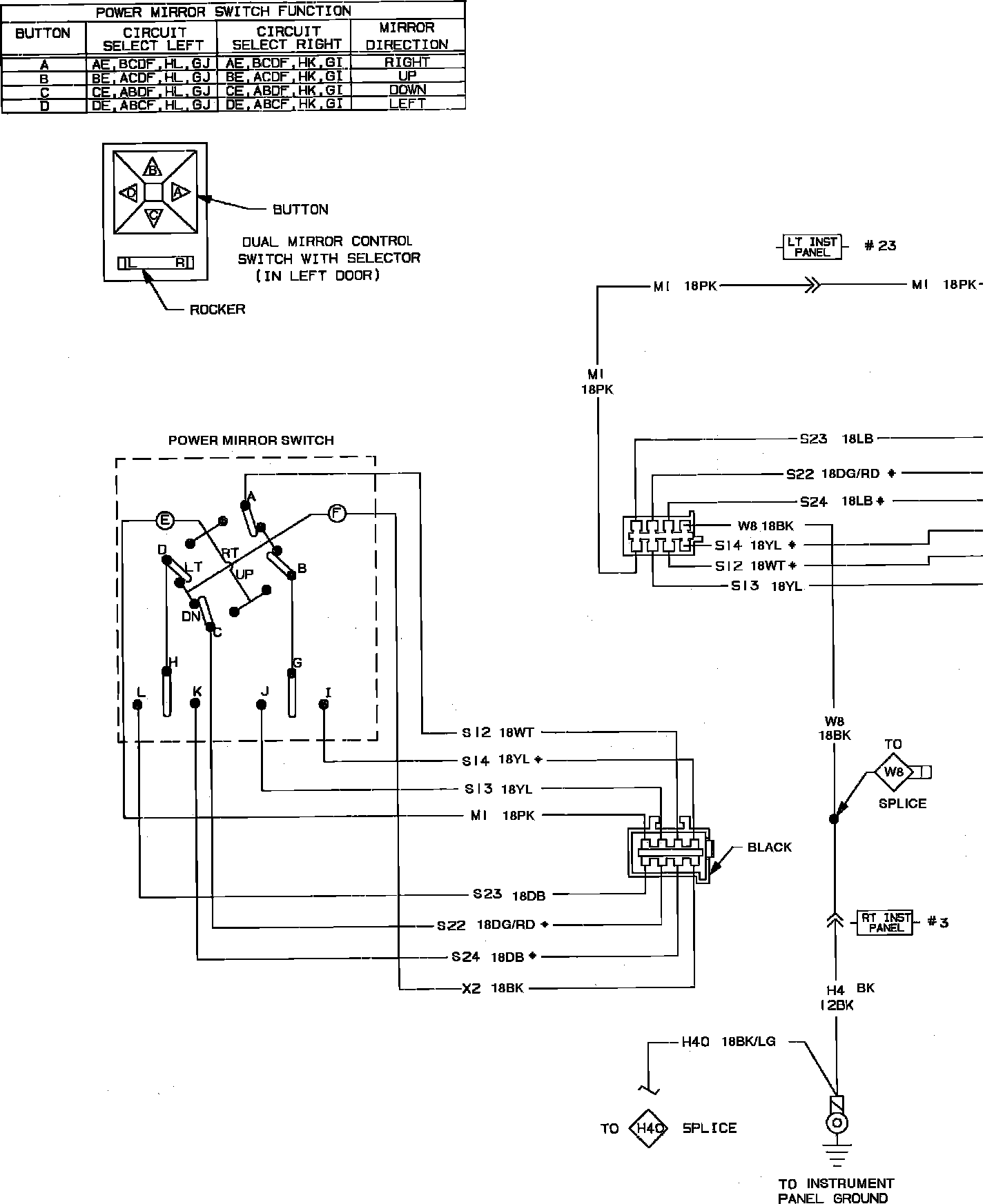 Power Remote Mirror Wiring Circuit: