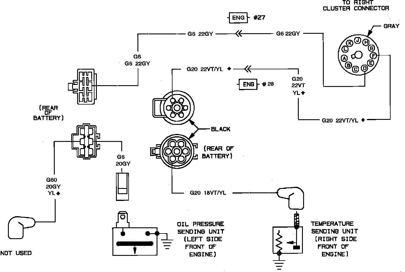 Oil Pressure & Temperature Warning System Wiring Circuit: