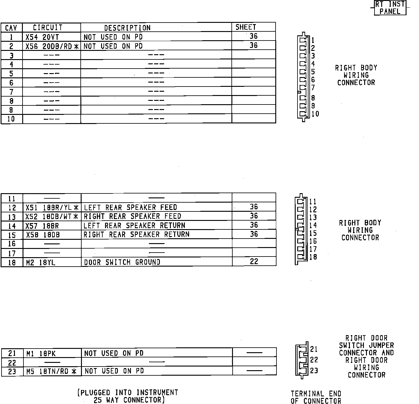 Body To Instrument Panel Connectors. Right Side: