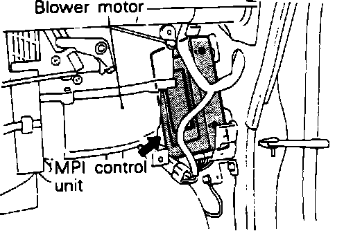 The electronic control unit (ECU) consists of an 8-bit microprocessor, random access memory (RAM). The ECU actively controls the operation of the fuel injection system, the ignition timing, and has full control of the idle speed control system. The ECU also interrupts the operation of the air conditioning and EGR systems under some conditions, and controls the power to the fuel pump (through the power relay). Based on the information from an array of input sensors (engine coolant, barometric press., air flow etc.), the ECU determines the optimum control and drives the output actuators accordingly. In addition to this the electronic control unit monitors the input/output signals. When it is noticed that an irregularity has occurred, the ECU memorizes the trouble code, and makes it available to the self-diagnosis output terminal. The diagnosis results can be read out with a voltmeter or multi-use tester. Moreover, since memorization of the trouble codes is backed up directly by the battery, the diagnosis results are held in memory even if the ignition key is turned off (except for the oxygen sensor code). The trouble codes will, however, be erased when the battery terminal or the engine control unit connector is disconnected.