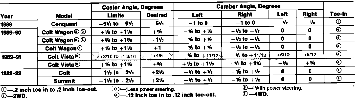 Front Wheel Alignment Specifications:
