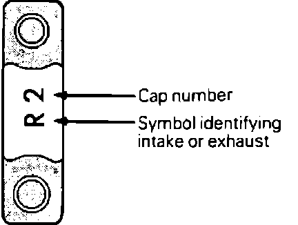 6. Install camshaft bearing caps. Bearing caps 2-5 are the same shape. Check identification marks on bearing caps to determine correct location, Fig. 26. ``L'' indicates intake camshaft side; ``R'' indicates exhaust camshaft side. No. 1 bearing caps are marked only ``L'' or ``R''. Ensure rocker arms are correctly mounted on lash adjusters and valve stem ends.