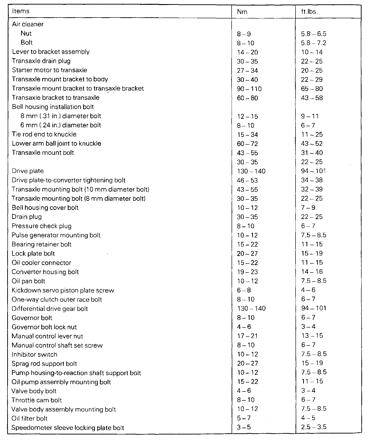Torque Specifications
