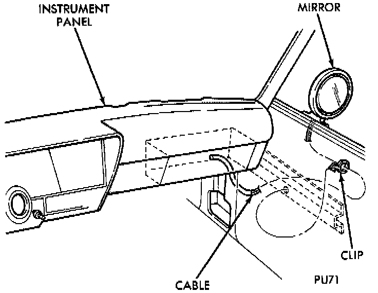 5. Remove fasteners securing mirror and remove mirrors and cable assembly from vehicle.