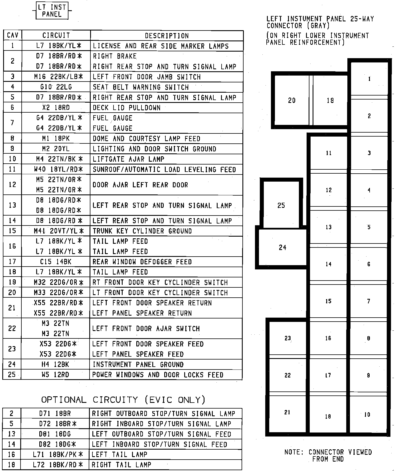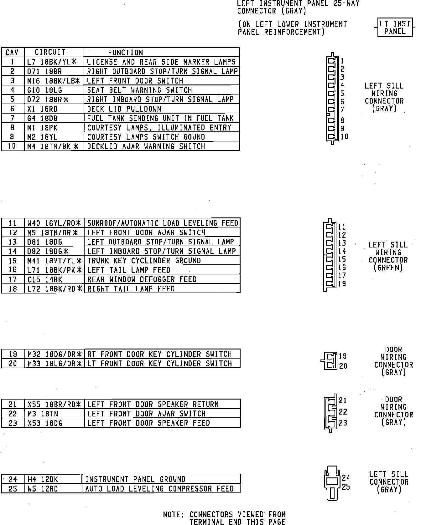 Body To Instrument Panel Connectors. Left Side: