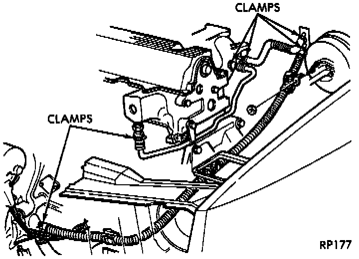 2. Loosen clamps at each end of hose to be removed.