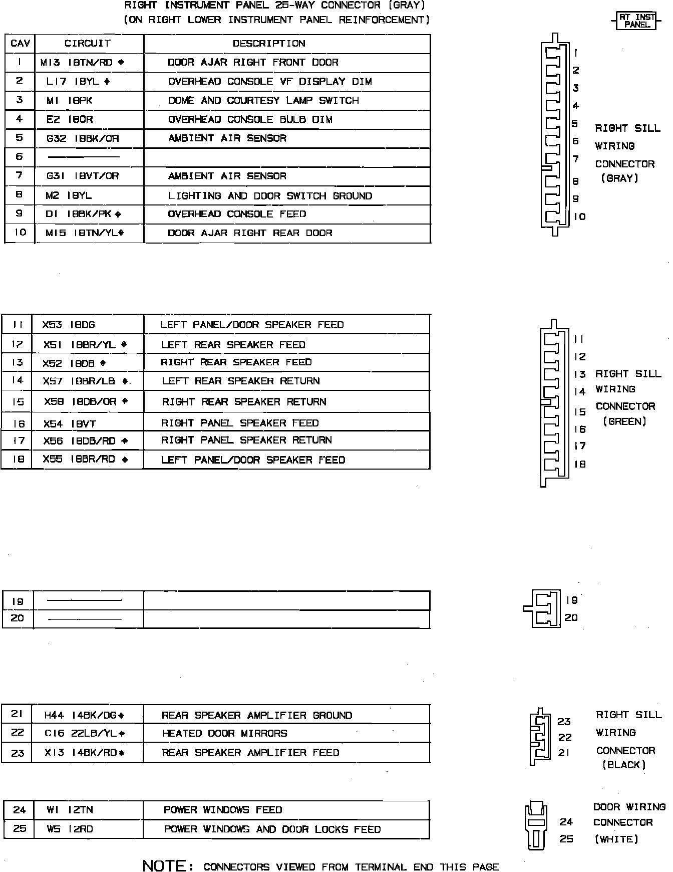 Body To Instrument Panel Connectors, Right Side (Part 2 of 2):