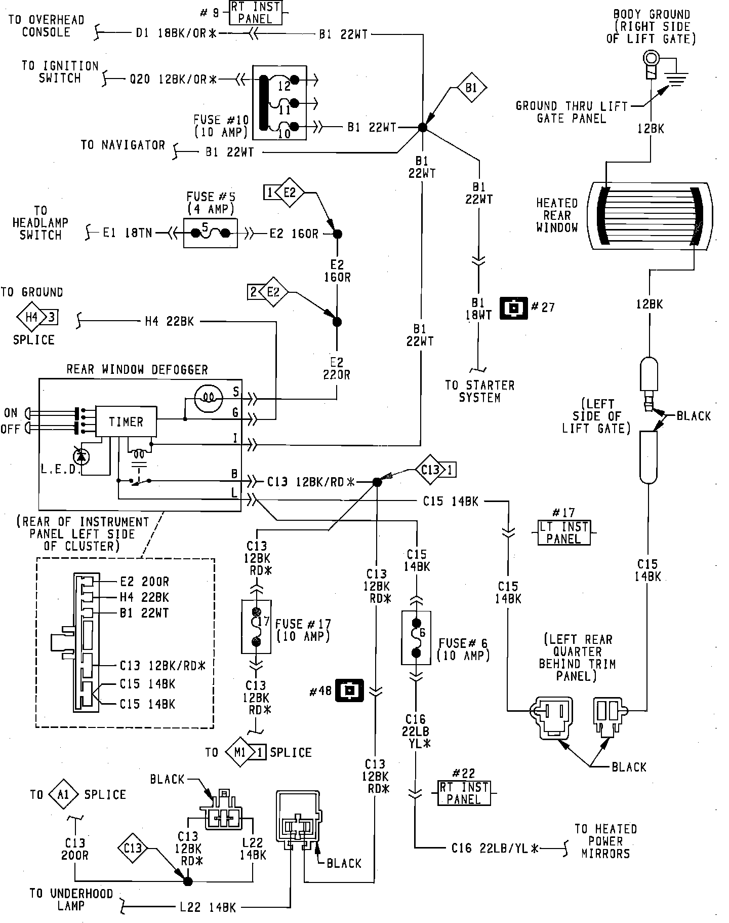 Rear Window Defogger Wiring Circuit: