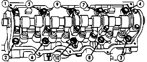 14. Remove cylinder head bolts in sequence, then cylinder head assembly.