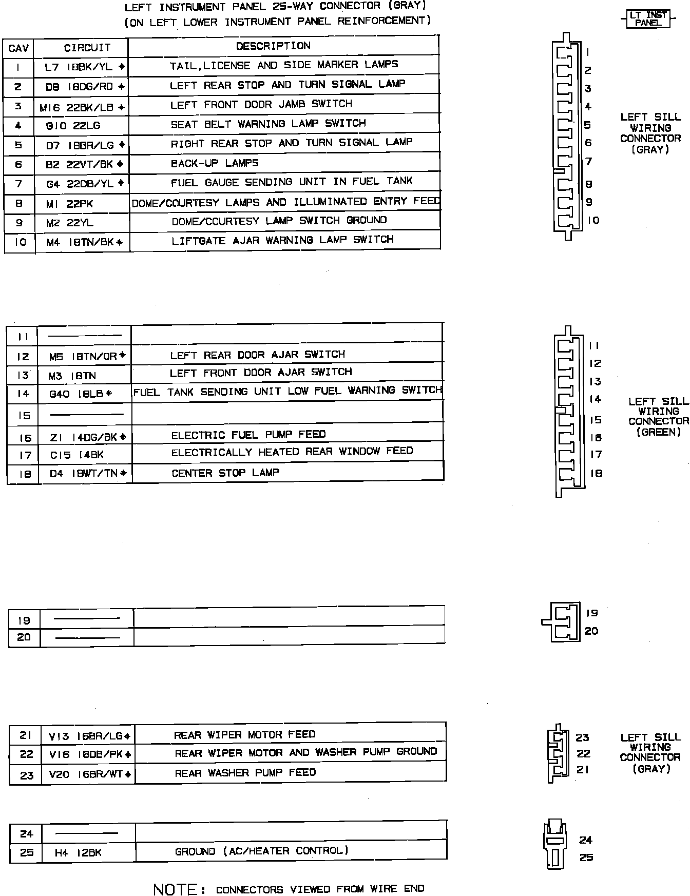 Body To Instrument Panel Connectors, Left Side (Part 1 of 2):