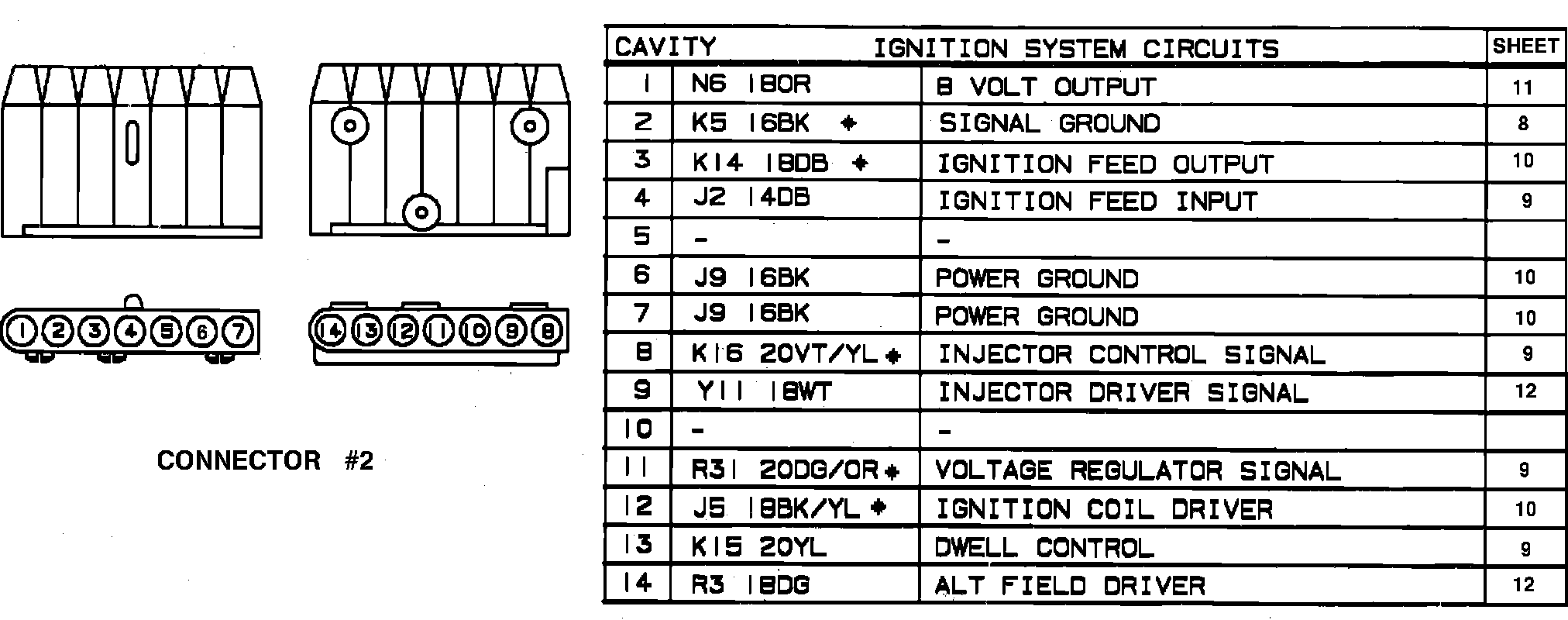SMEC 14 way electrical connector terminal identification. 1989: