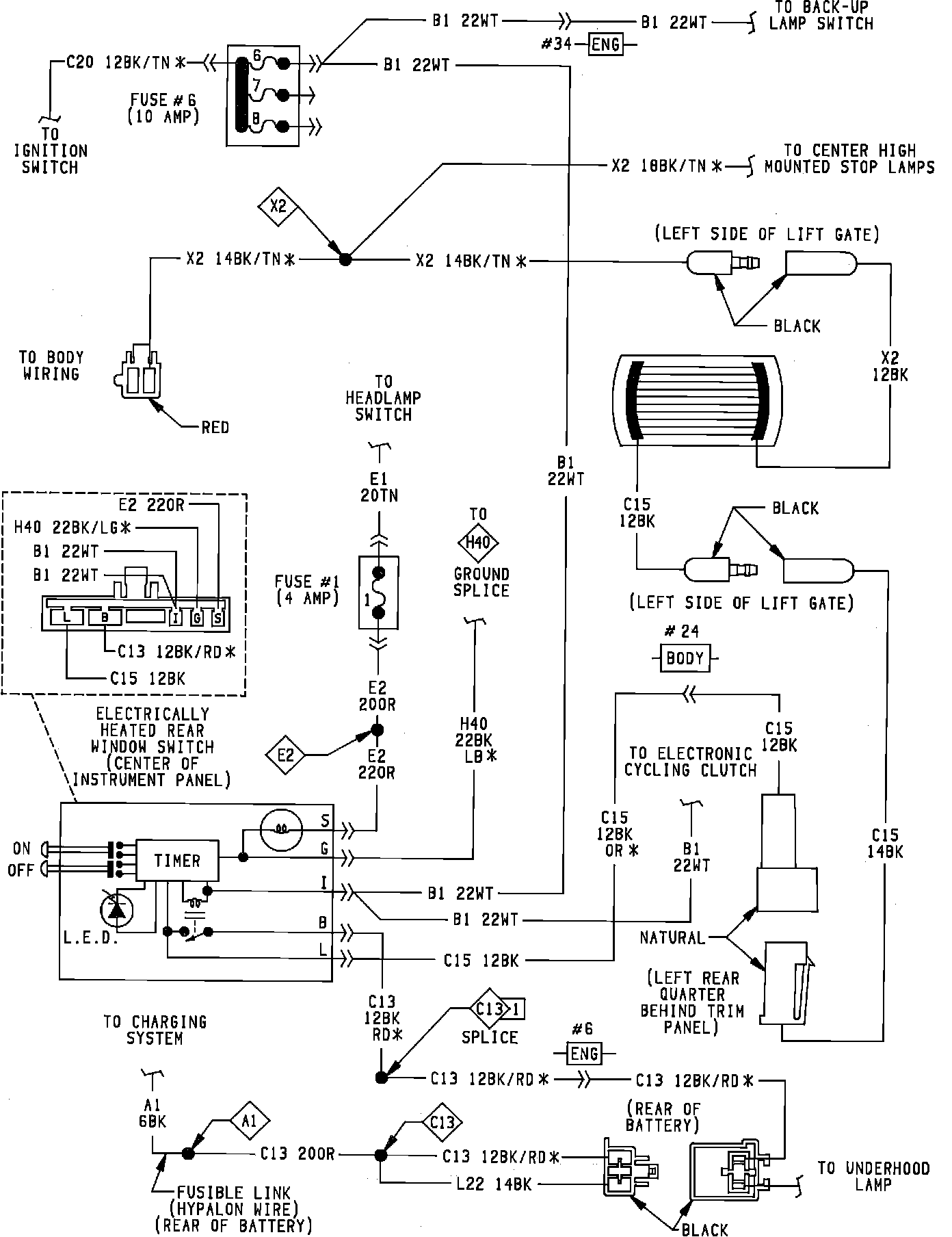 Rear Window Defogger Wiring Circuit: