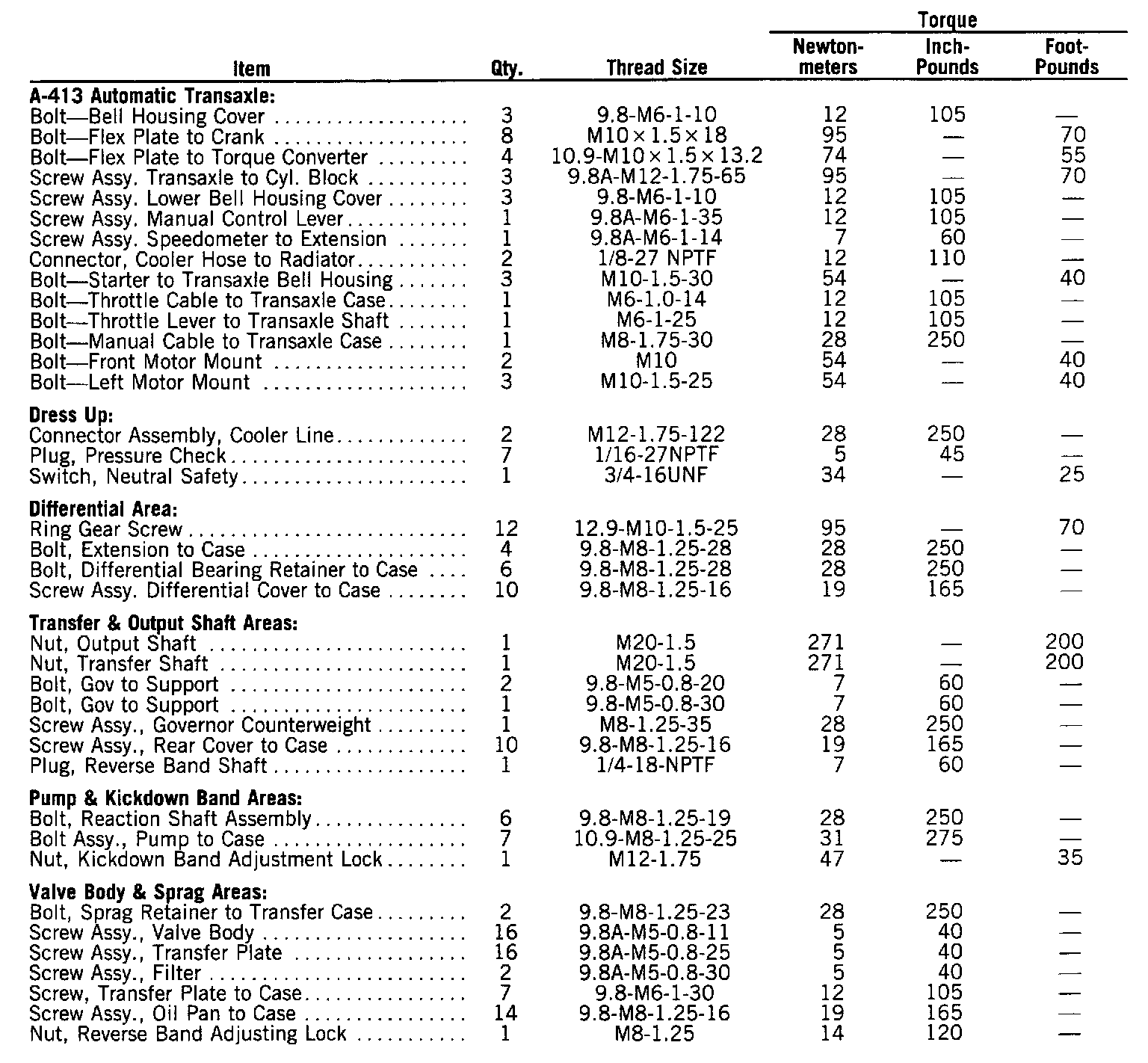 A-413, Torque Specifications: