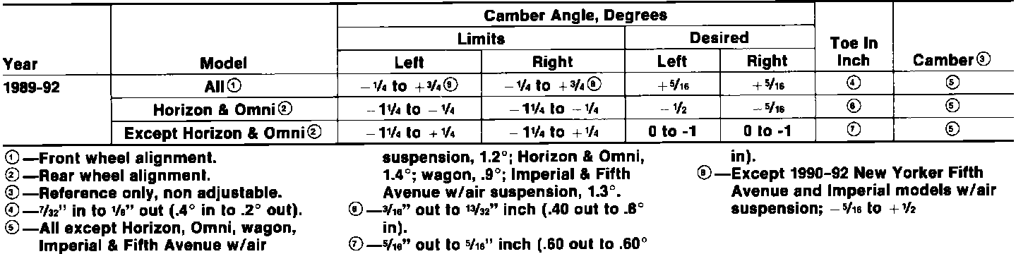 Wheel Alignment Specifications:
