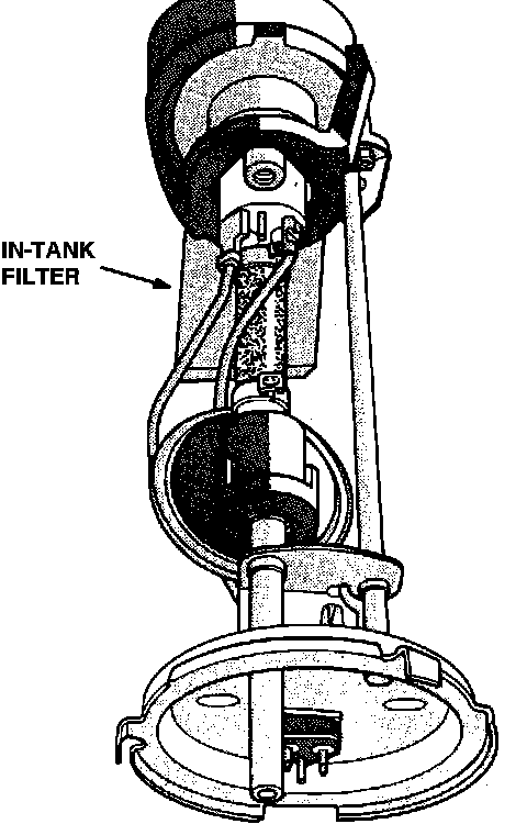 In addition to the sock style filter found on the fuel pump, all models have an in-line fuel filter mounted between the fuel tank and engine, under the vehicle. Due to the sensitivity of fuel injected engines this filter removes smaller contaminants that may have passed through the sock type filter.