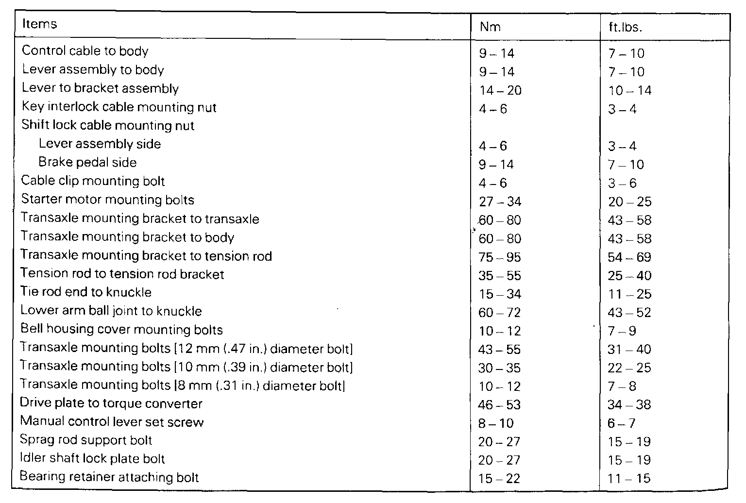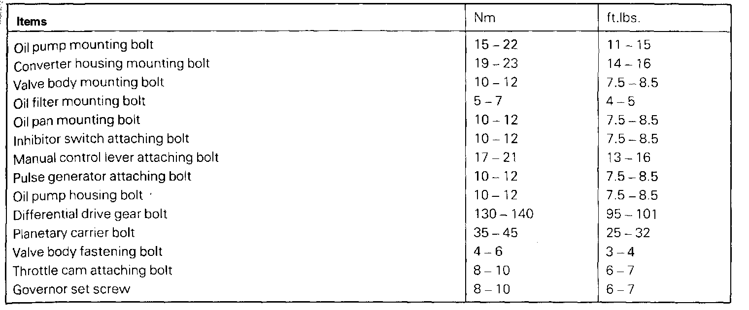 Torque Specifications:
