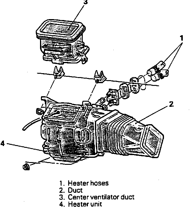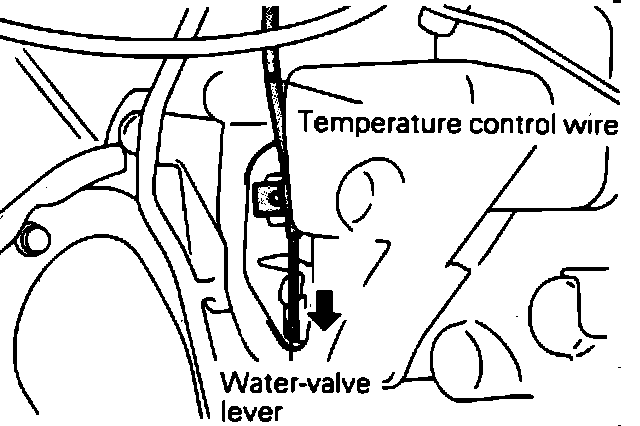 2. Place temperature control lever in warm position, then drain cooling system and disconnect heater hoses.