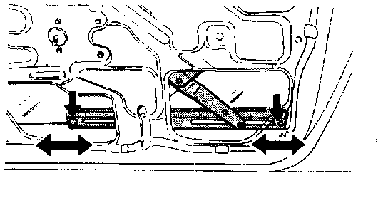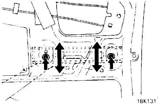 b. Lower the door glass until the holder reaches the access hole, loosen the door glass holder mounting screws, and then adjust the front-to-back position of the glass.