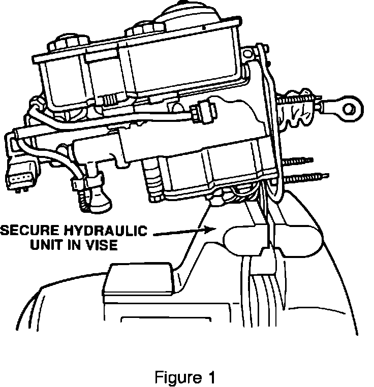 3. Secure the hydraulic unit in a vise, see Figure 1. Do not over tighten.