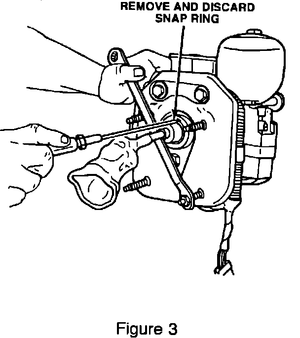 8. Rotate the open end of the snap ring near the 12 o'clock position. Place a small screwdriver in the 12 o'clock keyway on the actuator, Figure 3. Pry the snap ring down and out of the groove with the screwdriver and pull the snap ring out of end of the actuator. Discard the snap ring.