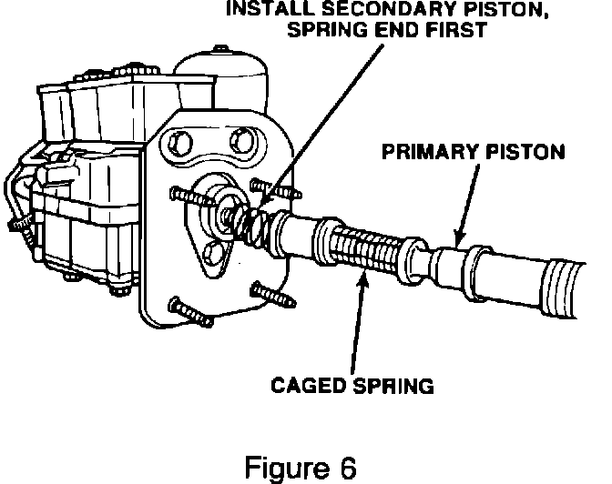 17. Position the caged spring at the end of the primary piston assembly over the pin on the rear of the secondary piston, see Figure 6. The caged spring must remain over this pin, throughout the installation procedure.