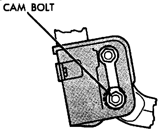 To adjust camber, loosen the cam and through bolts. On all models except 1989 Lancer and LeBaron, Shadow and Sundance and Dynasty, Imperial, New Yorker and New Yorker Fifth Avenue, rotate cam bolt to move top of wheel in or out to obtain specified camber angle. On 1989 Lancer and LeBaron, Shadow and Sundance and Dynasty, Imperial, New Yorker and New Yorker Fifth Avenue, loosen knuckle bolts just enough to allow movement between strut and knuckle, then push or pull tire to obtain specified camber angle. On all models except Horizon and Omni, torque nuts to 75 lb-ft, then advance an additional 1/4 turn. On 1989-90 Horizon and Omni, torquecam bolt nuts to 45 lb-ft, then advance nuts an additional 1/4 turn.
