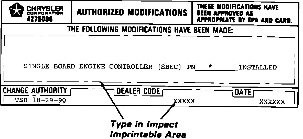 1. Replace the engine controller (SBEC) with the appropriate unit as called out in PARTS REQUIRED.