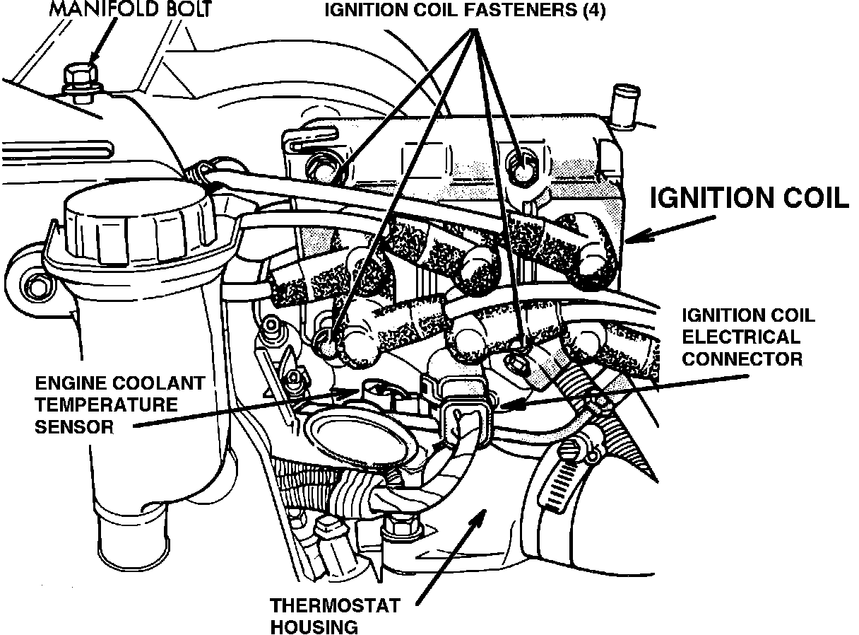 Ignition Coil And Coolant Temperature Sensor Location: