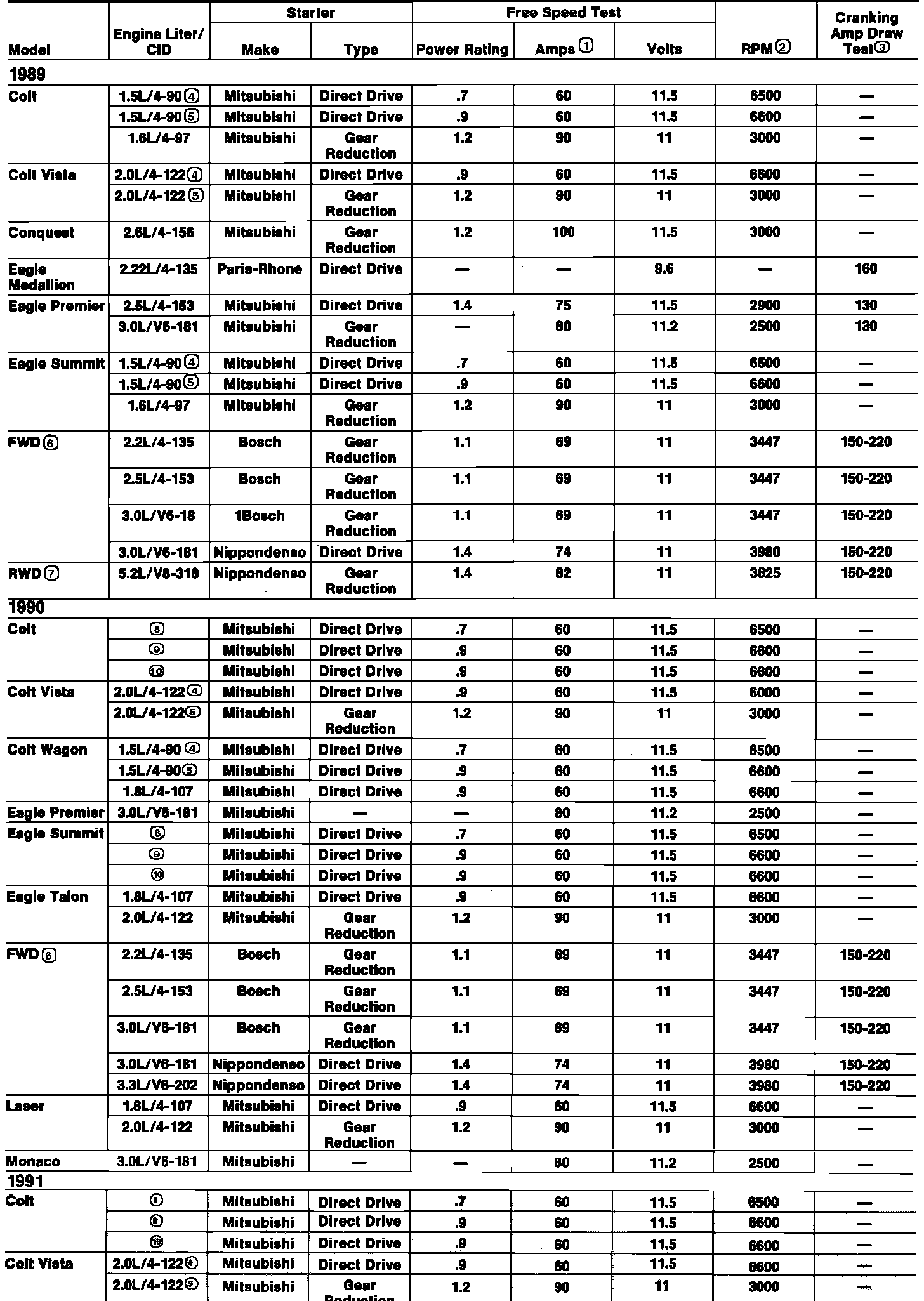 Qc�<Starter Motor Specifications: