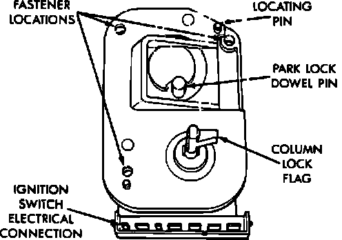 c. On column shift models, shift lever must be in P position and park lock dowel pin on ignition switch assembly must engage with column park lock slider linkage.