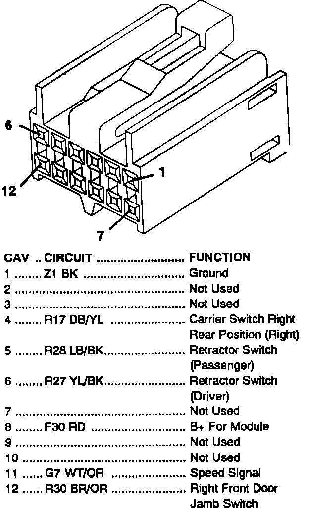 Fig. 75 Passive Restraint Module. Black 12 Way Connector: