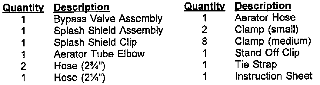 Each parts package contains these components: