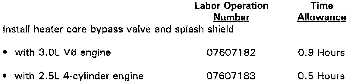 Safety Recall # 607 -- Heater Core Bypass