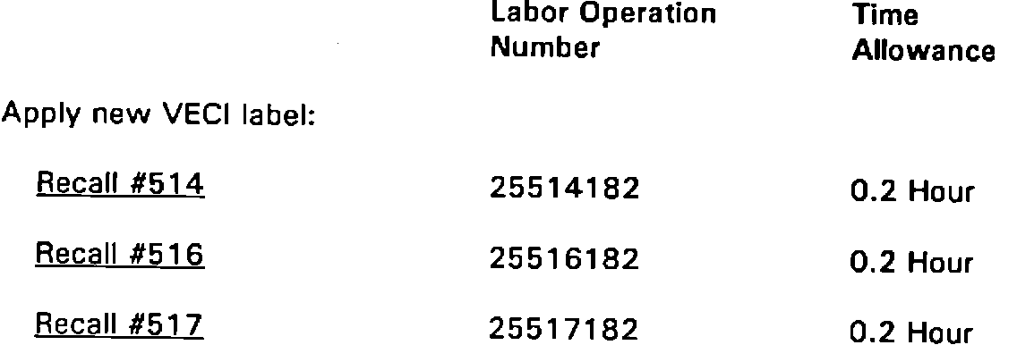 Vehicles requiring VECI label installation are divided into three separate recall groups depending on vehicle model and engine/emission system configuration. To ensure proper payment, be sure to use the correct labor operation number for the applicable recall as defined. The recall number can be identified from the Owner Recall Notification Form (lower right), from the applicable dealer Vehicle List or from DIAL System Function 70.