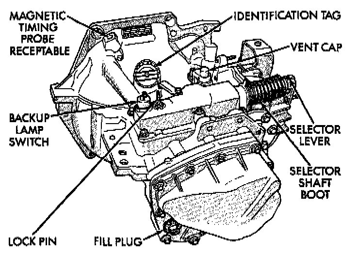A-523, A-543, and A-568: the transaxle model, assembly number, build date, and final-drive ratio are stamped on a tag that is attached to the top of the transaxle.
